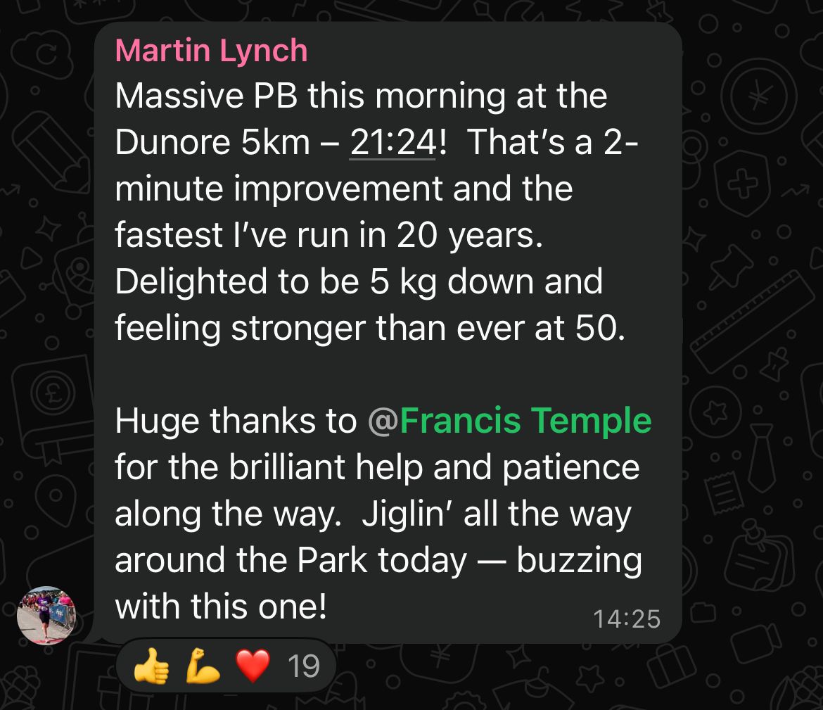 Since finishing the initial 12 weeks, life has improved immensely. I’m more confident, have gotten faster, know how to control my nutrition, my sleeping pattern has improved a lot and for once I'm actually looking forward to going back training