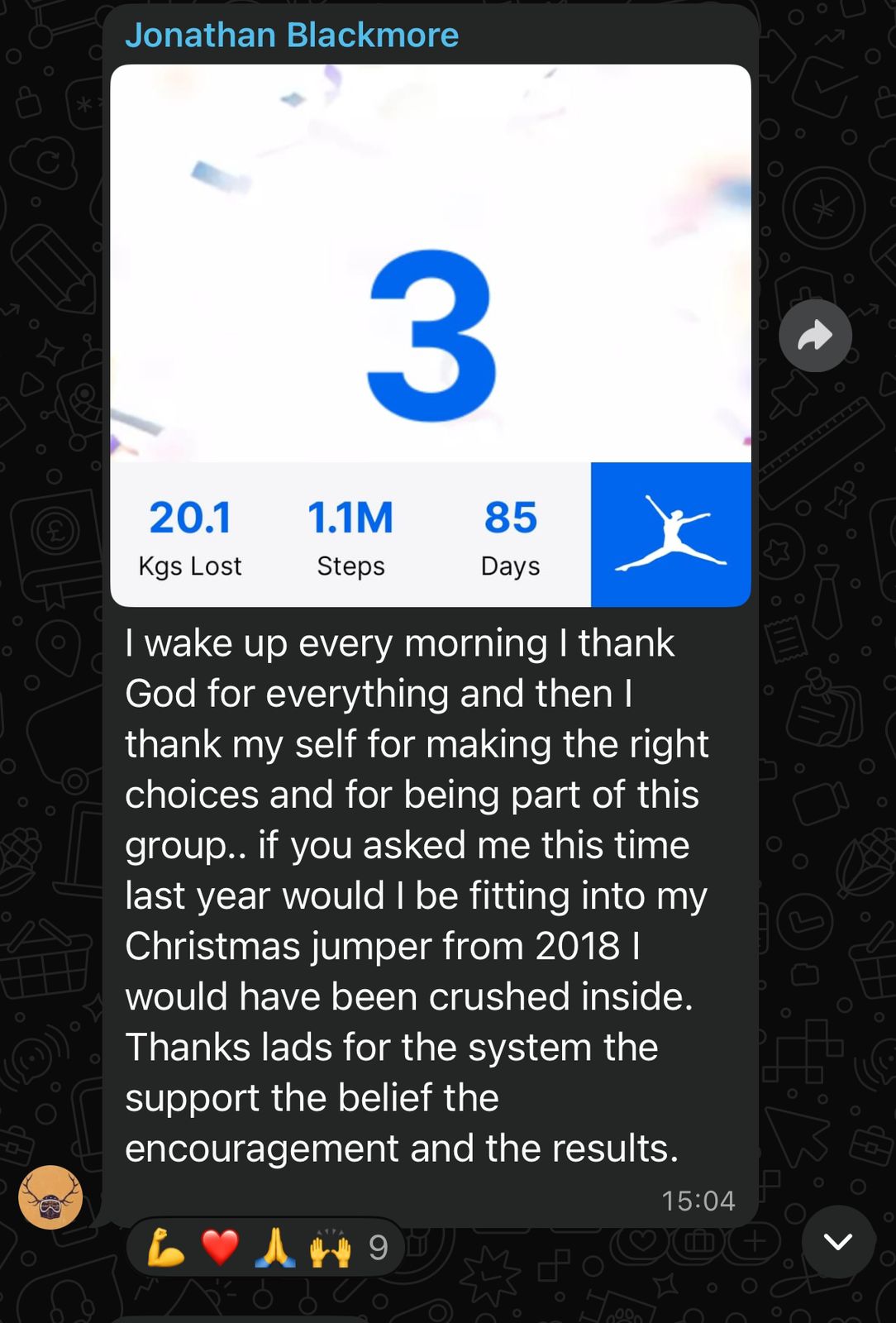 I feel a lot more in control of my life with the confidence gain from the weight loss especially and also with the strength gain it has given me great gym confidence 😀