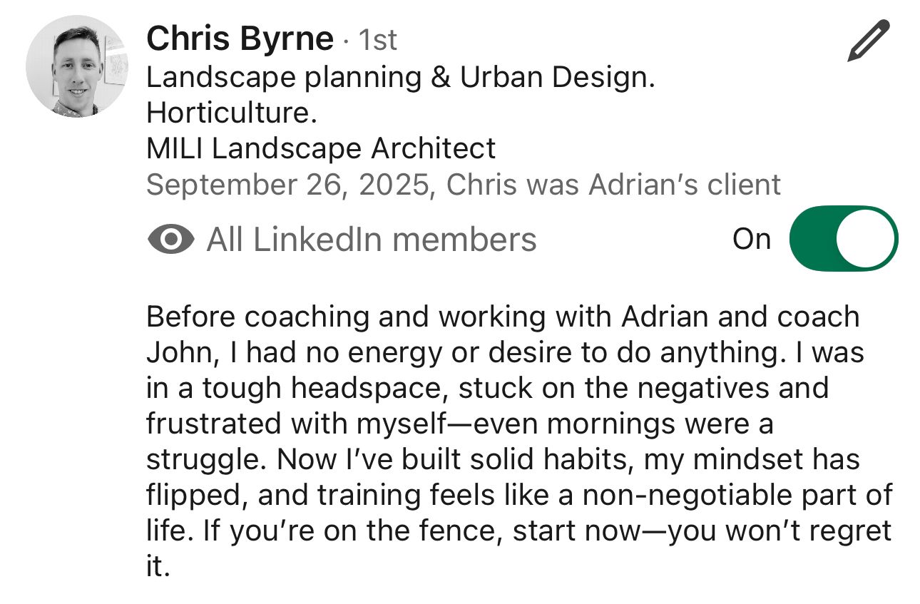 I was so on the fence about investing in a PT/coach but I’m so glad I reached out to Adrian, so clichéd but genuinely my only regret is not doing it sooner!